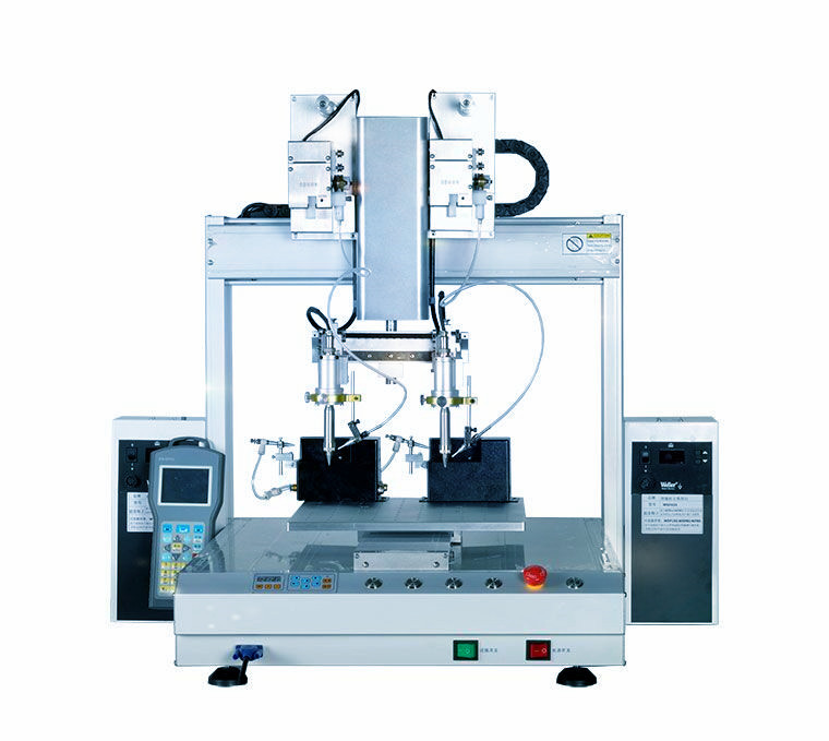 自動焊錫機編程方法簡單方便,可直接輸入焊點坐標,實現(xiàn)在線或離線編程,并顯示和再現(xiàn)焊點位置坐標。示教程序操作簡單,只需對示教盒進行簡單操作即可。空間中任何焊點位置的操作人員都沒有特殊的技術和專業(yè)要求,使得編輯操作更加人性化。焊接機器人具有靈活多樣的焊接方法。本自動焊機的烙鐵部件可任意角度、任意方向調(diào)節(jié),并可360度自由旋轉(zhuǎn)。實現(xiàn)焊接作業(yè)的多樣化。