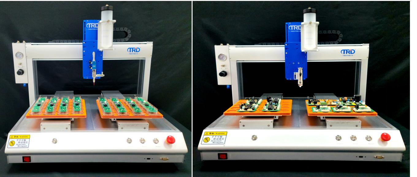 當然最近幾年由于技術的進步,點膠機也不再局限于只適用單組份的膠水了,目前天瑞達點膠機也有很多點膠機能夠實現三維、四維路徑點膠,精確定位,精準控膠,不拉絲,不漏膠,不滴膠,點膠機主要用于產品工藝中的膠水、油漆以及其他液體精確點、注、涂、點滴到每個產品精確位置,可以用來實現打點、畫線、圓型或弧型。