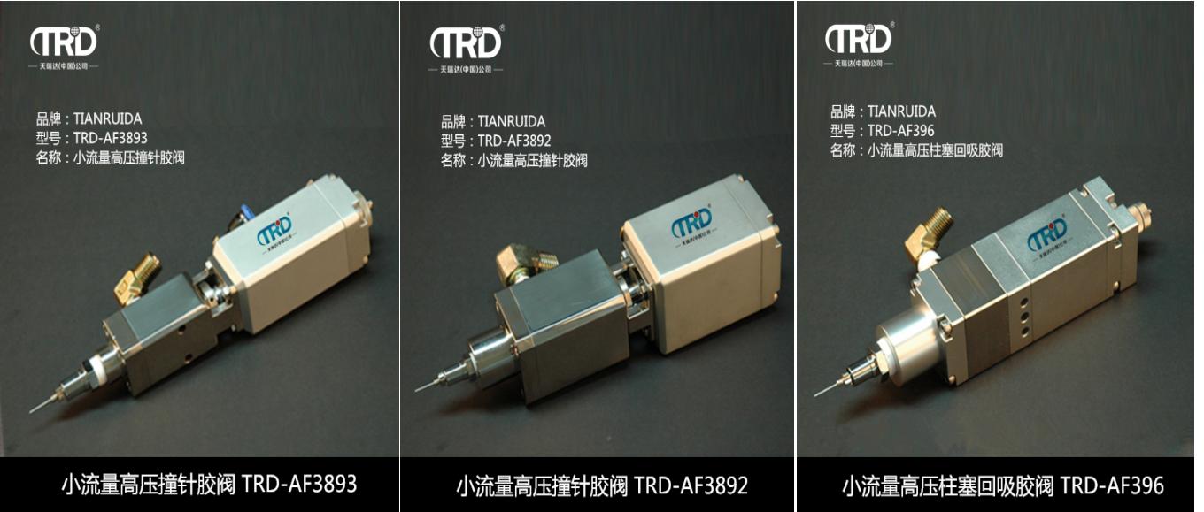 頂針式點膠閥:和回吸式點膠閥剛好相反方向運動,給電磁閥一個信號,從而驅動點膠閥活塞往上運動,膠水就通過料缸,膠水從針頭壓出。滴出的膠量由控制電磁閥時間、壓力桶氣壓大小、活塞運動行程即點膠閥微調三種因數決定,這樣就能任意搭配在任何自動化設備上面。