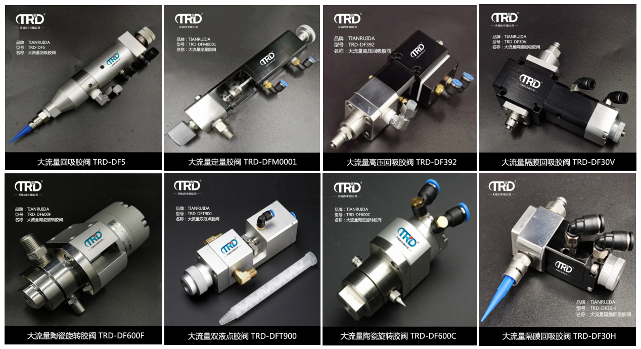 產(chǎn)品介紹TRD-DFM001大流量定量膠閥定量閥一般用在產(chǎn)品裝配前,在軸,軸承,齒輪,凸輪等有摩擦副的位置進(jìn)行定時、定量精確加注、涂抹油脂的一種新型閥體,具有集成度高、安裝方便、維修簡便、自動化程度高,勞動強(qiáng)度低、性能穩(wěn)定、加注油方便等特點(diǎn)。廣泛用于電動玩具、電動工具、家用電器、汽車零部件等裝配生產(chǎn)線。由于油脂是高壓的,是普通點(diǎn)膠閥不可替代的。