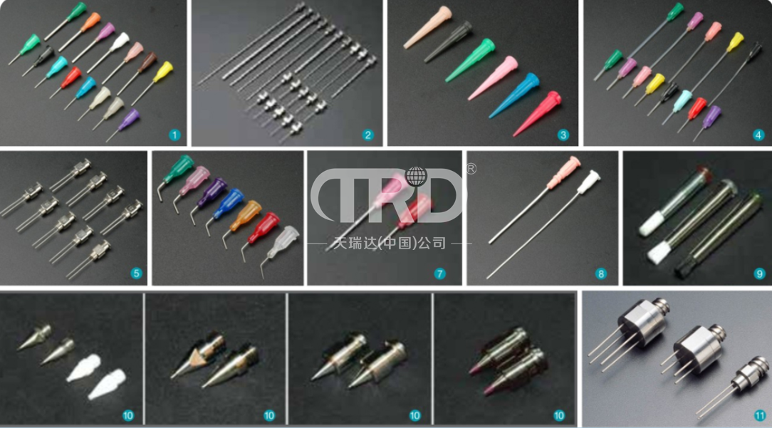 產品介紹點膠針頭均為精工所制,所有不銹鋼管皆采用獨特工藝,精密拋光無毛邊,可實現出膠精確,杜絕拉絲,雙螺旋鎖緊及大面積旋轉設計,不僅使配合更安全而且拆卸更容易。可以任意裝卸的金屬針頭,點膠針頭的規格一般來說都比較小,在14G-35G之間。且色系種類繁多,在選擇的時候也需要考慮最適合的品種。點膠針頭主要應用于SMT、LED、半導體制造、醫藥等點膠行業。 技術參考